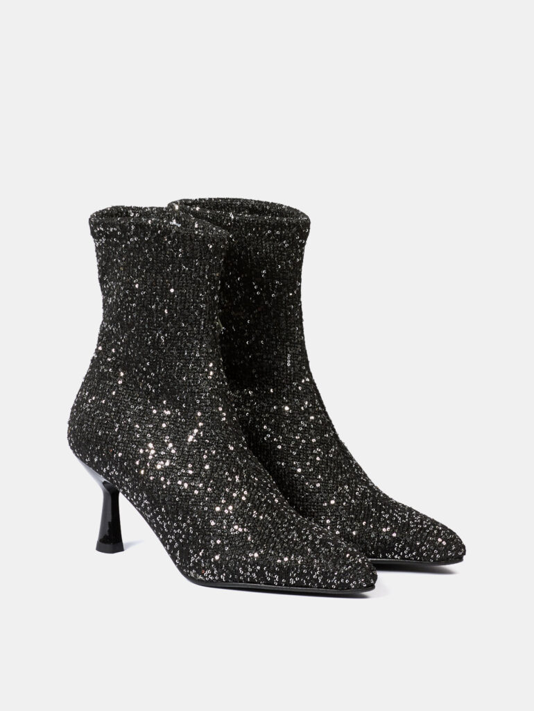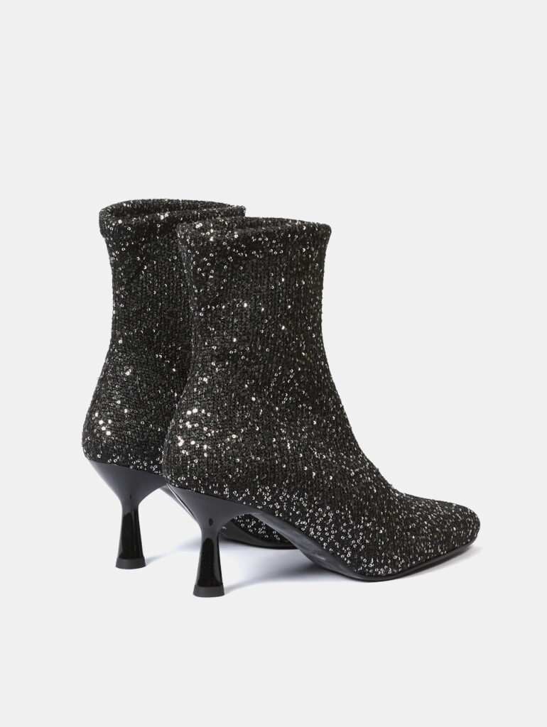 Los botines de tacón modelo Zena combinan estilo sofisticado y confort en un diseño Eco-Elástico. Están fabricadas en ante stretch reciclado de color negro con detalle de lentejuelas. Con un tacón fino de 5 cm, aportan una altura elegante sin comprometer la comodidad. Fabricadas en España con materiales sostenibles, estas botas reflejan un compromiso con la moda ética, ideales para elevar cualquier look.